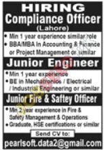 Pearlsoft, a leading private sector company, is looking for experienced professionals. We are seeking a Compliance Officer and Junior Engineer to contribute to our dynamic team in Lahore. These roles require specific academic qualifications and a minimum of 1 year of experience in related fields. Embrace the opportunity for professional growth with Pearlsoft. Apply now for these job vacancies!