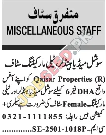 Job Openings at Qaisar Properties: Marketing & Telemarketing Specialist Positions