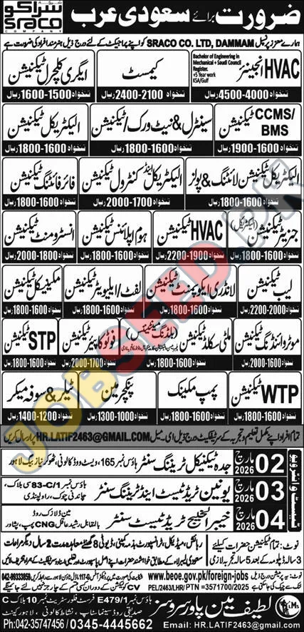 SRACO CO. LTD, a private sector entity based in Dammam, Saudi Arabia, is currently hiring for various technical positions, including HVAC Engineers, Electricians, and Technicians. Explore these job vacancies 2026 with competitive benefits. We offer competitive salaries and opportunities for professional growth. This recruitment drive is for experienced professionals seeking employment in a challenging and rewarding environment. Apply today and make a great career move!