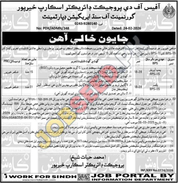 | Job Hiring Organization: | Government of Sindh Irrigation Department |