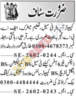 A well-established private sector organization in Karachi is seeking skilled and dedicated individuals for multiple positions, including Computer Operators and Office Staff. These exciting career openings offer the chance to join a dynamic work environment. The company focuses on professional growth and offers a competitive salary. Apply now for the latest job openings.