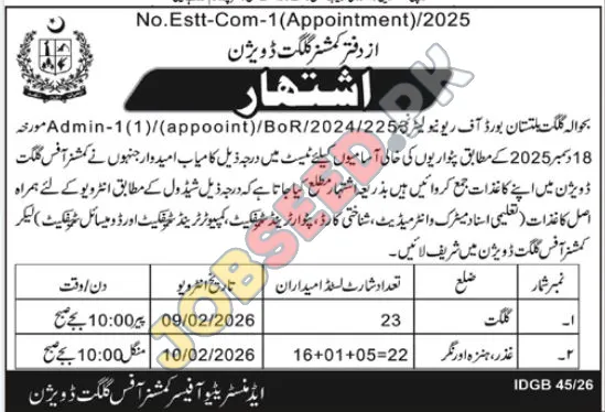 - Candidates need to attend interviews at the Commissioner's Office, Gilgit Division.