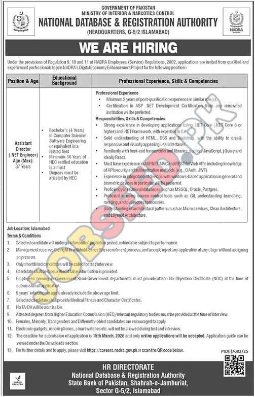 Exciting Career Opportunity: Assistant Director (.NET Engineer) at NADRA