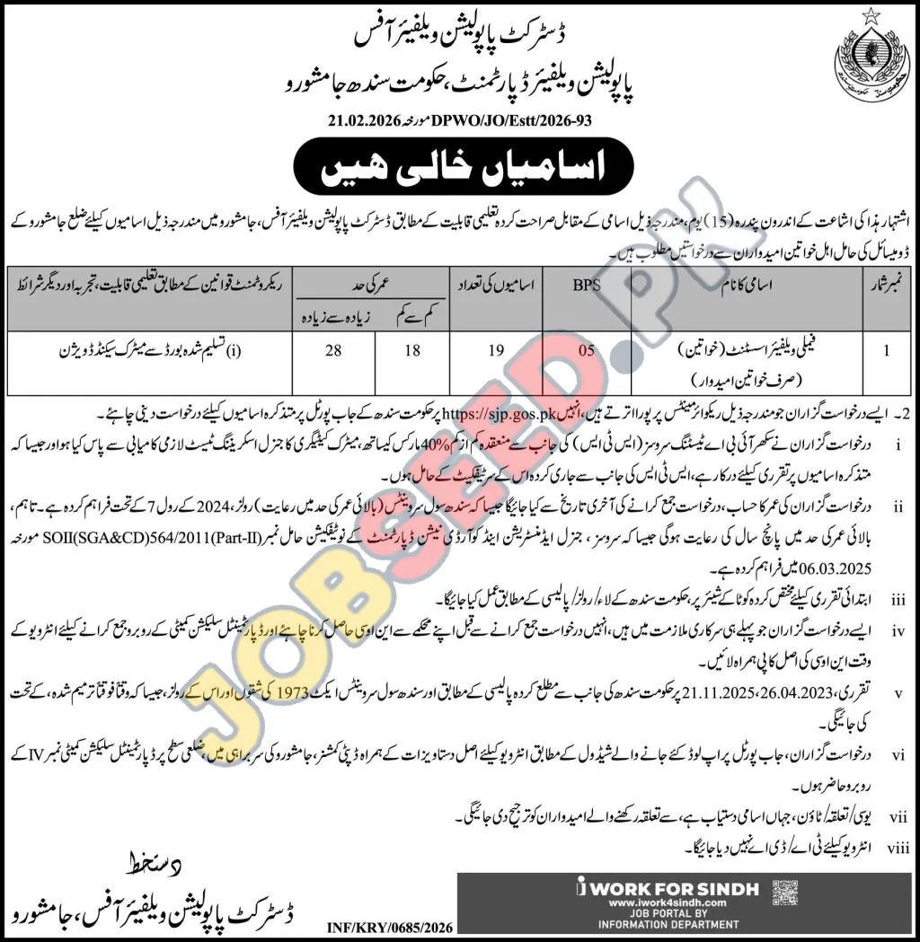 | Job Hiring Organization: | District Population Welfare Office, Jamshoro, Government of Sindh |