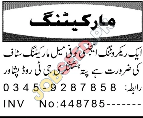 The private sector recruitment agency is looking to hire dedicated female marketing staff in Peshawar. The advertisement seeks candidates with relevant experience for immediate hiring. The role provides opportunities to advance your professional career and enjoy a competitive salary package. Take advantage of this employment prospect and build a successful career path.