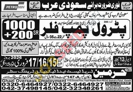 Seeking qualified Petrol Pump Fillers for a prominent company based in Saudi Arabia. This role requires individuals capable of handling fuel transactions, maintaining cleanliness, and ensuring customer satisfaction. Ideal candidates should be able to read and write basic English. This position represents excellent hiring in the region. This is a great opportunity to explore employment. For additional information register your interest now