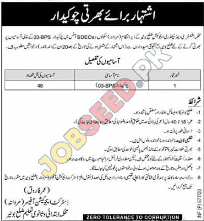 A government organization in the education sector is seeking qualified individuals for Security Guard positions in Buner District, Pakistan. This presents a prime opportunity to secure employment within a public sector entity, offering stability and the chance for professional development. Successful candidates will be responsible for ensuring the safety and security of schools and SDEOs offices. Apply now for these job openings!
