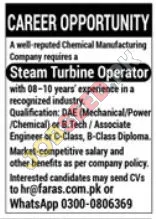 Faras Chemical Manufacturing Company, a distinguished leader in the private sector, is currently recruiting a skilled Steam Turbine Operator. This pivotal role offers a stimulating work environment and a chance for professional advancement within the chemical manufacturing sector. The position promises competitive compensation and additional benefits aligned with company policies.
