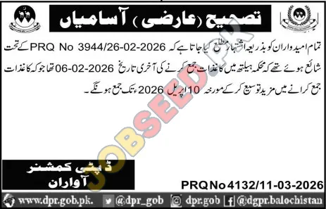 | Job Hiring Organization: | Deputy Commissioner's Office, Awaran |