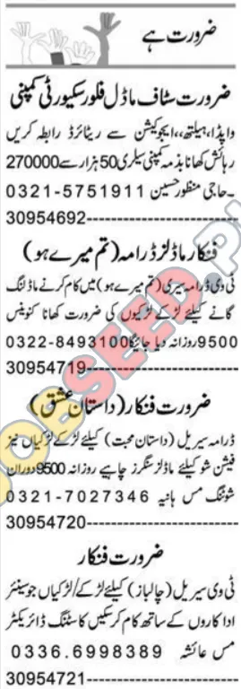 Are you a talented individual seeking exciting career opportunities in the entertainment industry? A leading company is currently hiring models and artists for various projects, including TV dramas and fashion shows. This is a chance to showcase your skills and begin your journey towards professional growth. These are the latest jobs with competitive salary packages. Don't miss this excellent employment opportunity in a dynamic and thriving sector. Apply today!