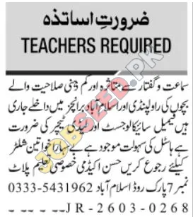 Hassan Academy, a leading private educational institution specializing in special education, is seeking passionate and qualified teachers to join their Islamabad and Rawalpindi branches. This is your chance to contribute to a supportive learning environment, offering career development and professional growth. We are currently hiring female psychologists and lady teachers. Join our team and make a difference!. Discover excellent career openings and employment prospects within our dynamic team. Apply now for a chance to thrive in the education sector.