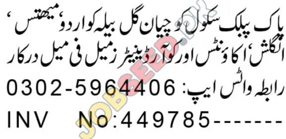 | Job Hiring Organization: | Pak Public School |