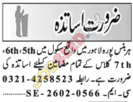 Are you a passionate educator looking for government career openings in the education sector? A reputable school in Harbanspura, Lahore, is seeking dedicated Teachers for various subjects for 5th, 6th and 7th classes. This is a great chance to join a growing educational institution and contribute to the development of young minds. Offering competitive salary packages, this teaching job provides an excellent pathway for professional growth. Apply now to seize the career opportunity!