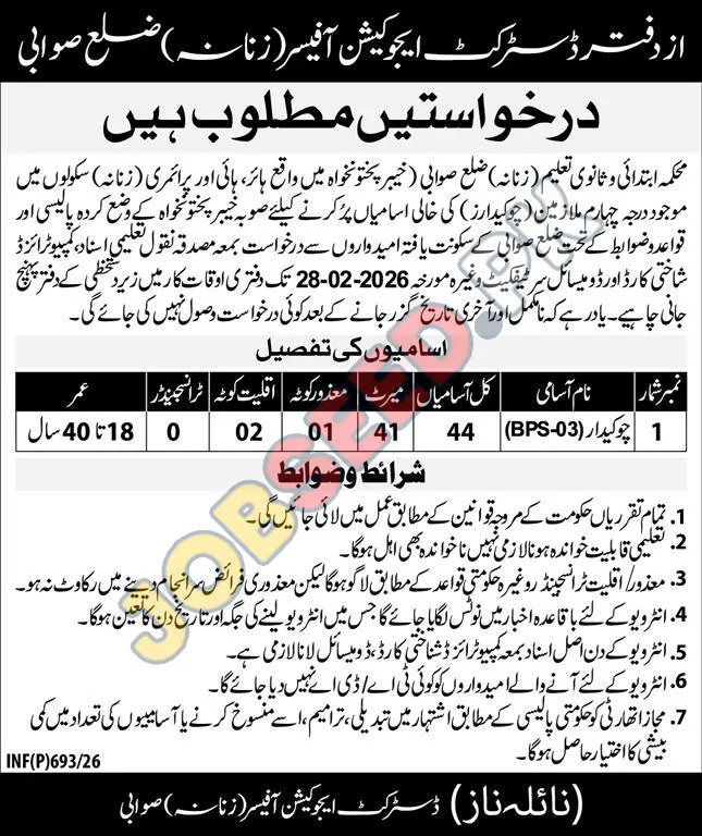 | Job Hiring Organization: | District Education Officer (Female) Swabi |