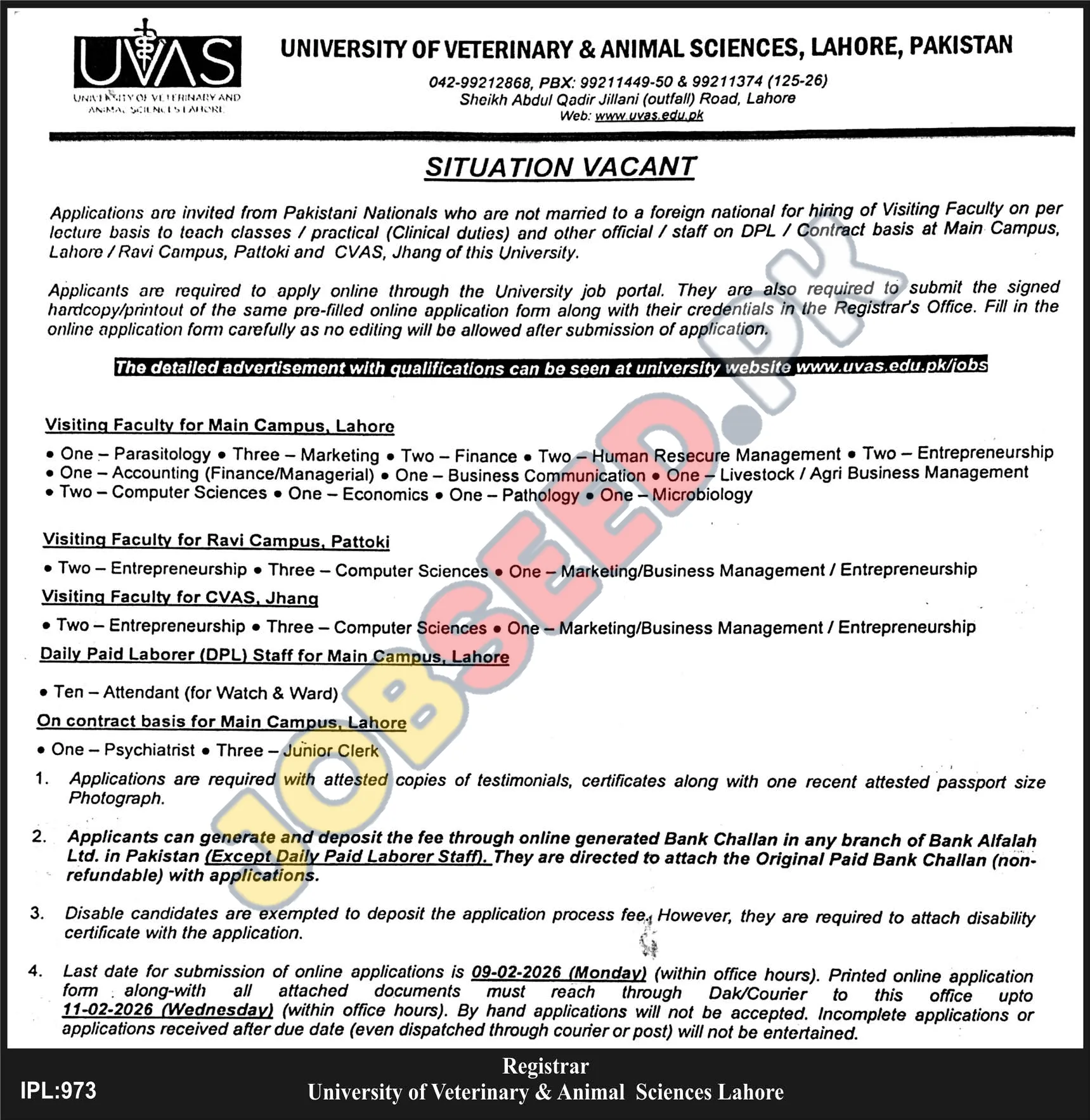- Online Application: Apply through the University's job portal available at the UVAS official website. π