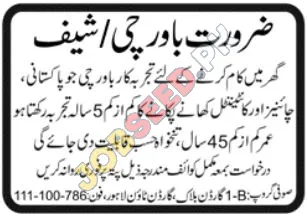 This advertisement seeks a seasoned Cook for a domestic kitchen environment, emphasizing Pakistani and continental culinary expertise. The role demands at least 5 years of hands-on experience, with candidates aged 25-45 being preferred. Successful applicants will receive remuneration based on their demonstrated abilities. This position offers a chance to contribute to a well-managed household, providing a stable and rewarding career path for aspiring chefs. Discover new employment opportunities and enhance your culinary career in a supportive setting.