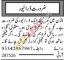 Looking for a Driver position? A reputable household in Multan is hiring an experienced Driver. This job provides a competitive salary and accommodation. The ideal candidate will have a minimum of five years of driving experience. For family, a quarter will also be available. Don't miss this career opportunity!