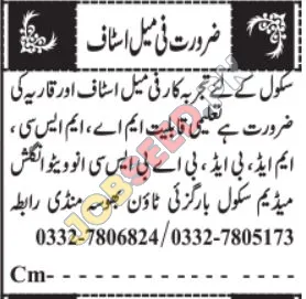 Innovative English Medium School in Bargzai Town, Bhusa Mandi is seeking qualified female teachers and a Qaria with pertinent educational backgrounds. This private institution welcomes applications from those holding MA, MSc, MEd, BEd, BA, and BSc qualifications. Explore exciting career opportunities within a dynamic educational setting.