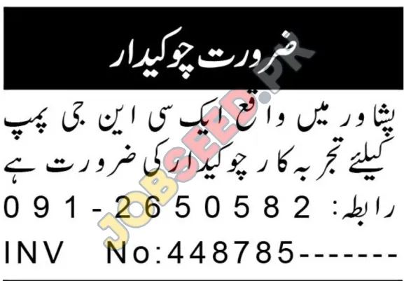 Experienced Security Guard Vacancy at CNG Station in Peshawar