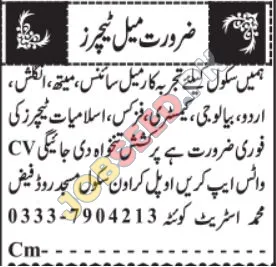 Opal Karon School in Quetta is looking for experienced male teachers. Opportunities are available for teachers specializing in Science, Math, English, Urdu, Biology, Chemistry, Physics, and Islamic Studies. This is a great chance for educators to join a respected educational setting and teach in a supportive environment, focusing on career development. With openings for experienced educators, the school offers a competitive salary package to attract qualified teachers.
