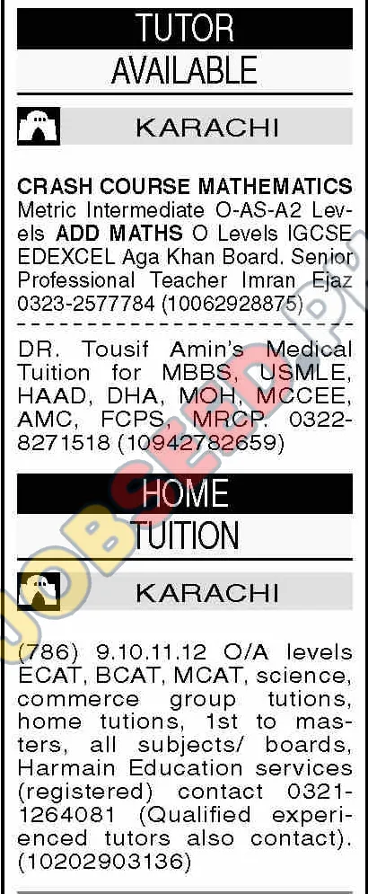 Are you a qualified educator looking for teaching opportunities in Karachi? Exciting vacancies are available for experienced tutors to teach various subjects and levels, including O-Levels, A-Levels, and medical exam preparation. This is a great chance to join a reputable private tutoring service and make a real impact on students' academic success. We are looking for teachers who can provide high-quality instruction and help students achieve their educational goals. If you have the required qualifications and are passionate about education, we encourage you to apply. This private sector opportunity offers flexible hours and the chance to work in a supportive environment.