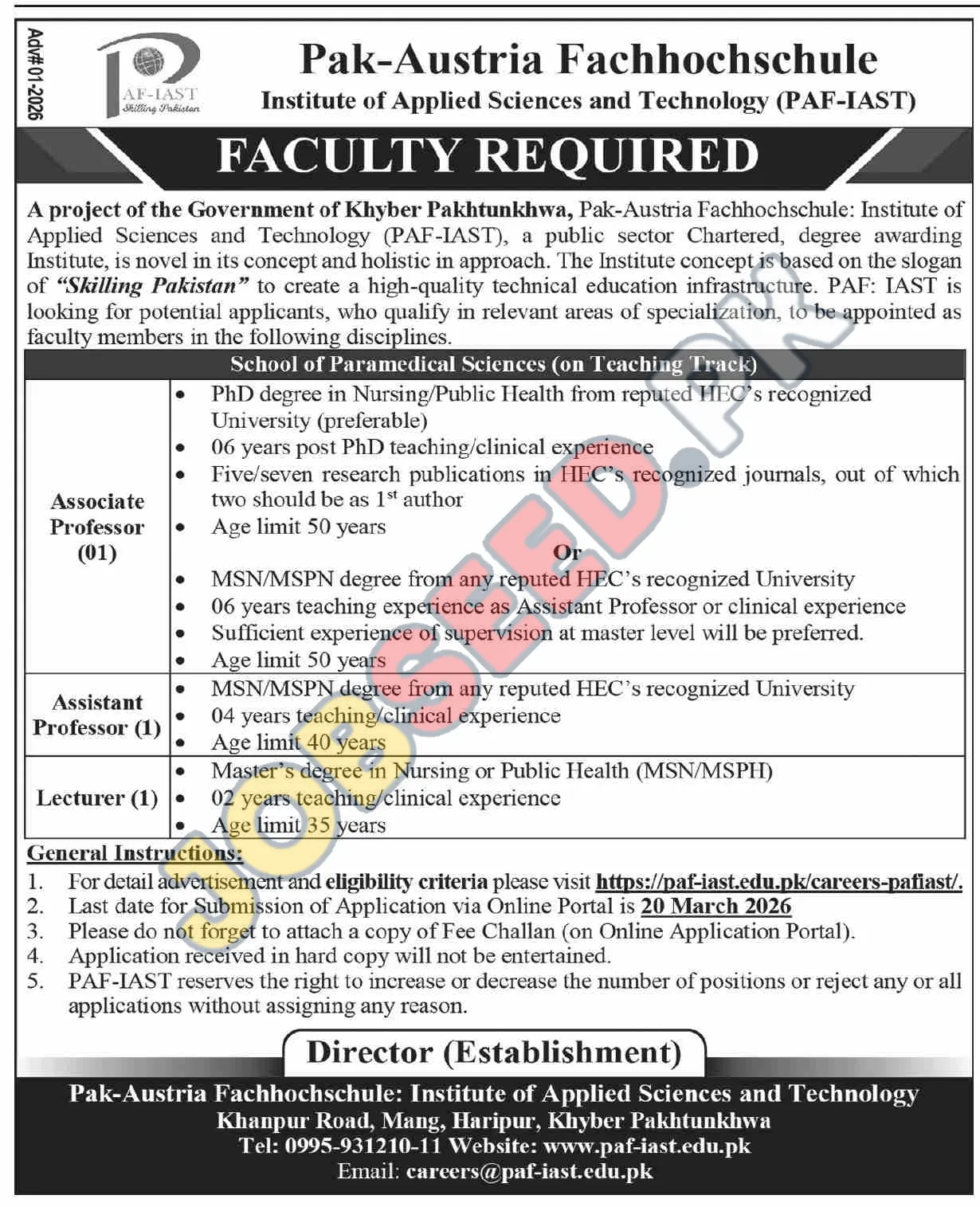 - Step 1: Review Eligibility - Carefully examine the detailed eligibility criteria for each faculty position on the official PAF-IAST careers portal.