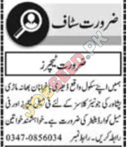 - Dedicated Female Teachers sought for junior classes.