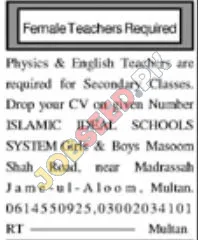 ISLAMIC IDEAL SCHOOLS SYSTEM is announcing exciting career opportunities for qualified Female Teachers to impart knowledge in Physics and English to secondary school students. This is a significant chance for educators to contribute to a respected educational institution in Multan, Pakistan. We are looking for passionate individuals who can inspire and guide students towards academic success. Join our team and be part of a dynamic learning environment that values professional development and student achievement.