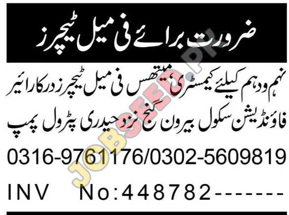Foundations School is seeking qualified female teachers for Chemistry and Mathematics. This presents a great opportunity for teachers to contribute to the education sector and build a fulfilling career in a private educational institution. Apply today!