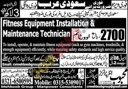 Fitness Equipment Installation & Maintenance Technician Vacancies in Saudi Arabia