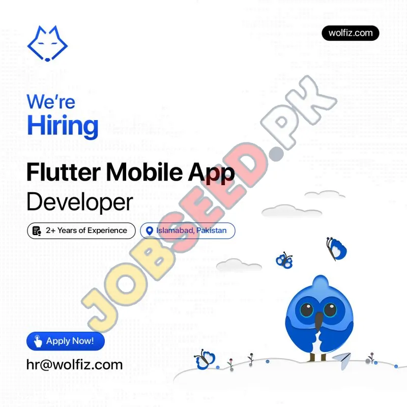 Career opportunity at Wolfiz located in Islamabad for the position of Flutter Mobile App Developer. This employment notice was announced on 04 December, 2025 through Online Advertisement. Candidates possessing a BA degree are encouraged to submit their application.