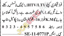 Food Factory, Lahore Punjab Pakistan invites applications from eligible candidates for the post of Driver as per advertisement of 24 November, 2025, published in Jang Newspaper. Literate educational qualification will be preferred.