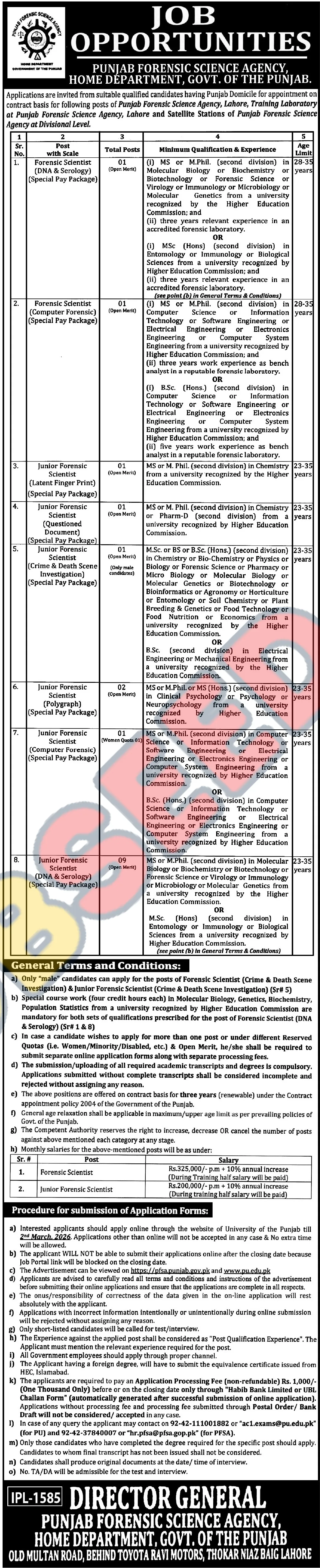 | Job Hiring Organization: | Punjab Forensic Science Agency |