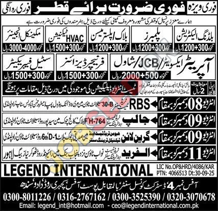 | Street Address: | Legend International Recruitment Agency Doha Qatar Pakistan |