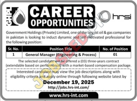 Human Resource Solution International HRSI is now recruiting in Islamabad. Apply for the position of General Manager (Engineering & Process). The required qualification is Bachelor. This role is within the Management industry. A bachelor degree is preferred. The application process commenced on 03 December, 2025 via Jang Newspaper. Interested and eligible candidates must submit their applications before the deadline on 19 December, 2025. This is a prime opportunity to join a renowned organization. For a step-by-step application guide and full eligibility criteria, please see the official advertisement on https://www.jobseed.pk.