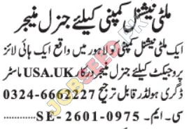 General Manager Job Vacancy in Lahore for Multinational Company