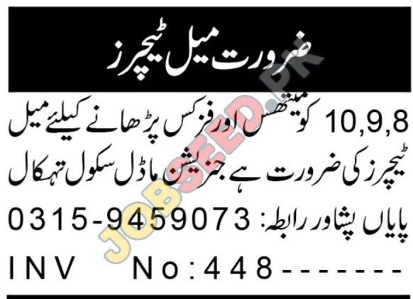 Generation Model School in Tehkal, Peshawar, is looking for passionate educators to join their team. They are seeking experienced male teachers to teach Mathematics and Physics to grades 8, 9, and 10.