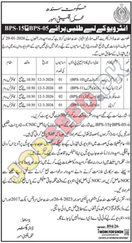 - Policy Adherence: All recruitment will be conducted in accordance with the Sindh Government's policies, including the Civil Servants Act 1973 and relevant amendments.