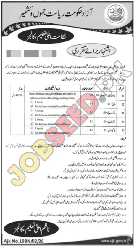 | Job Hiring Organization: | Azad Government of the State of Jammu and Kashmir |
