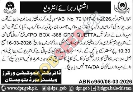 | Job Hiring Organization: | Balochistan Welfare Board |