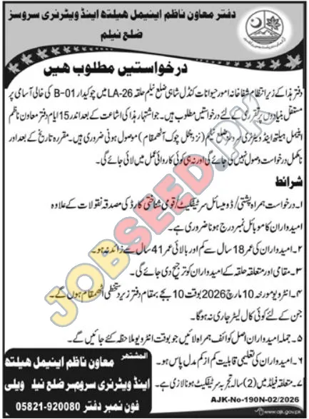 Government Animal Health Assistant Vacancies in Neelum Valley