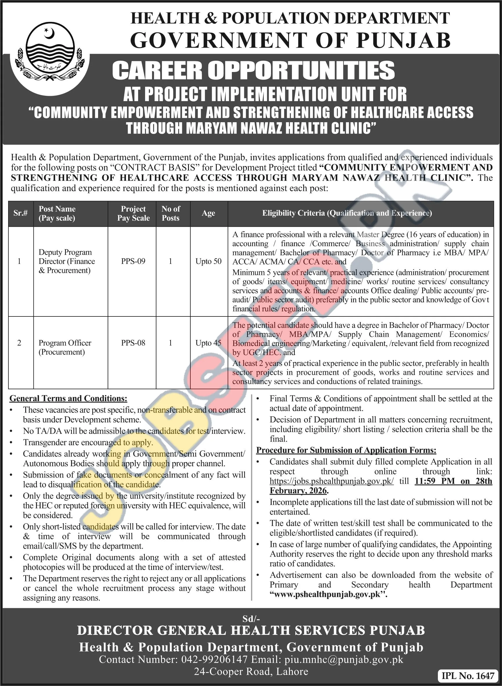 Explore exciting government job openings in Punjab with the Health & Population Department. We are seeking experienced Finance Professionals and Procurement Officers for a significant development project focused on community empowerment and healthcare access. This is a prime opportunity for individuals looking for stable government employment and professional growth within the public sector. Discover competitive salaries and the chance to contribute to vital healthcare initiatives. Apply now for these contract-based positions and advance your career in public service.