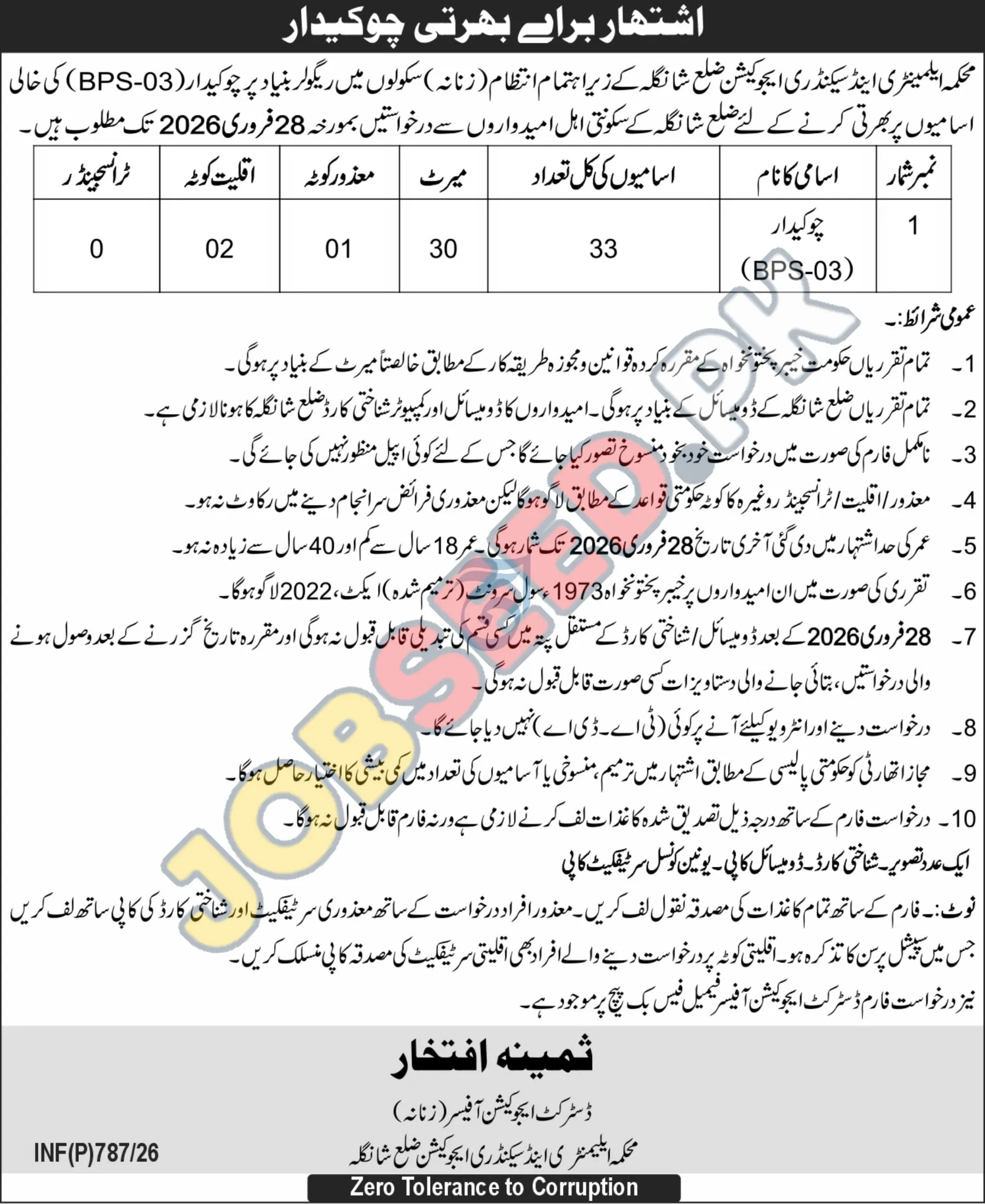 - Job Title: Chowkidar (BPS-03)