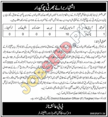| Job Hiring Organization: | District Education Officer (F) Torghar |