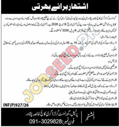 | Job Hiring Organization: | Government Postgraduate College Peshawar |