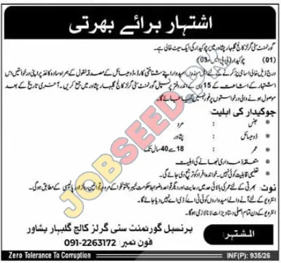 Government College for Girls Gulibar, Peshawar, is pleased to announce a significant recruitment drive for the position of Administrator. This is a fantastic opportunity for individuals seeking stable government employment and a chance to contribute to the educational sector in Khyber Pakhtunkhwa. The college is committed to providing a supportive work environment and fostering professional growth for its employees.