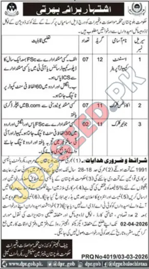 | Job Hiring Organization: | Government of Balochistan |