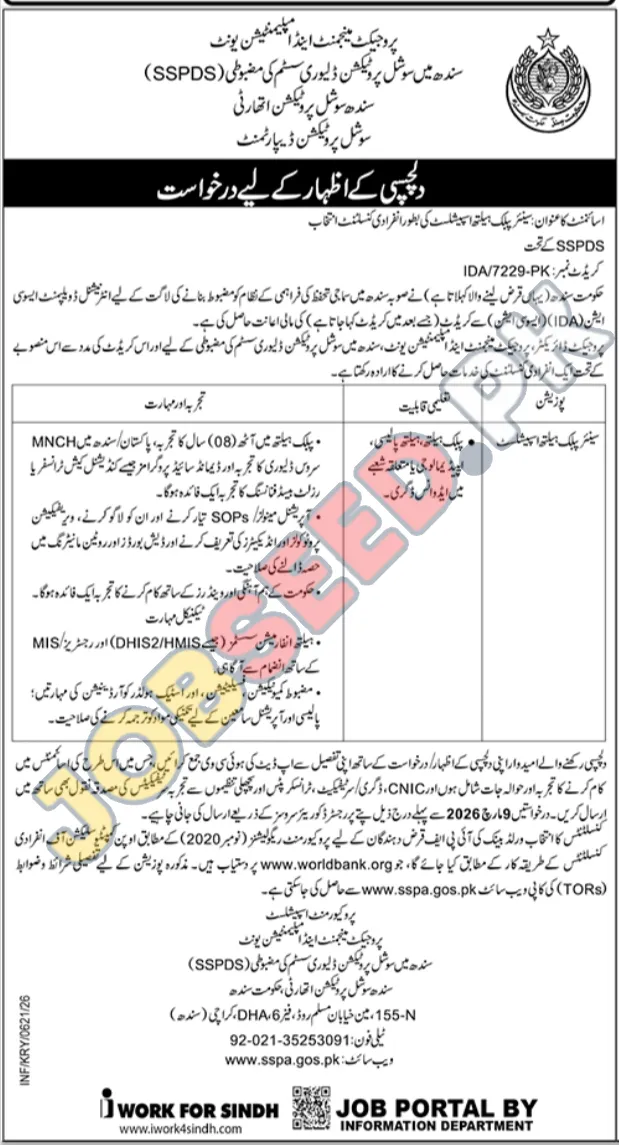 | Job Hiring Organization: | Sindh Social Protection Delivery System (SSPDDS) |