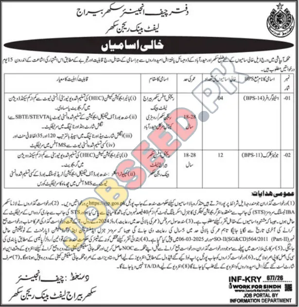 Government Engineering Vacancies in Sukkur Region
