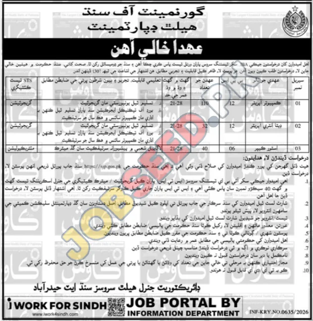 Government Health Department Hiring: Data Entry Operators & Computer Operators in Sindh